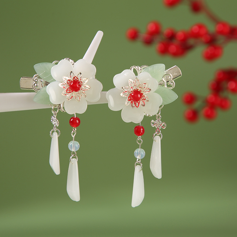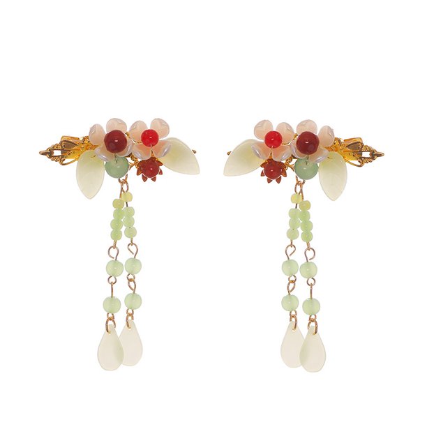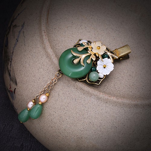Imitation Jade Bead Flower Leaf Tassel Crystal Hair Clip Vintage Chinese Style Hanfu Cheongsam Hairpin Barrette Hair Accessories Today S Best Daily Deals Temu