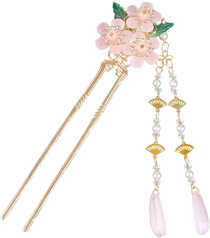 Sweet Flower Tassel Hair Sticks U Shaped Antique Jade Flower Hairpin Insert Hair Clip Cute Kids Hair Fork Ponytail Holder Headdress For Girls Pink Walmart Com